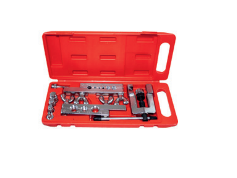 Abocardador e alargador para tubos de 1/8″ a 3/4″, incluindo 5 adaptadores para alargar 7 diâmetros de tubagem: 3/16″, 1/4″, 5/16″, 3/8″, 1/2″, 5/8″ e 3/4″.